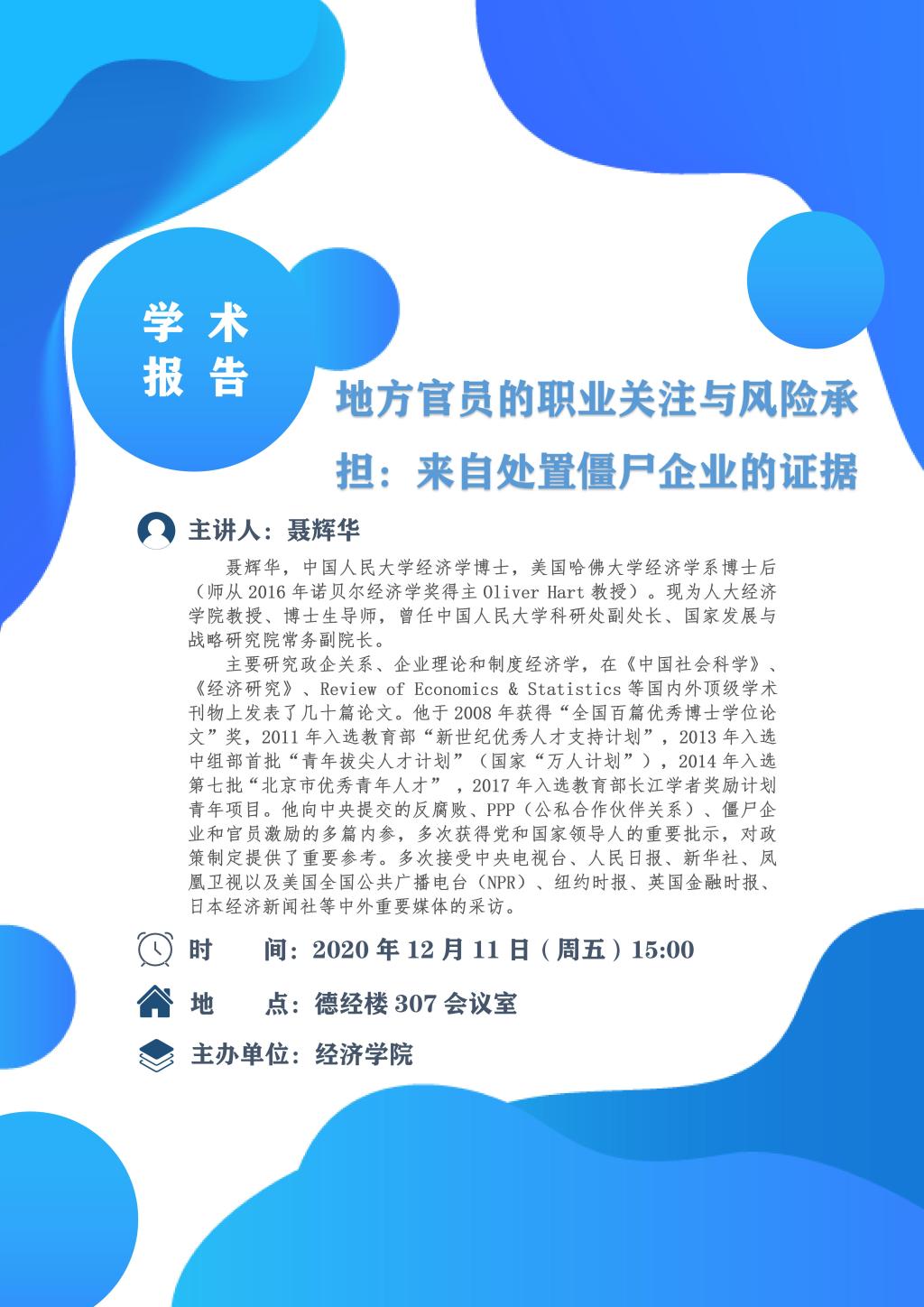 学术报告预告:地方官员的职业关注与风险承担