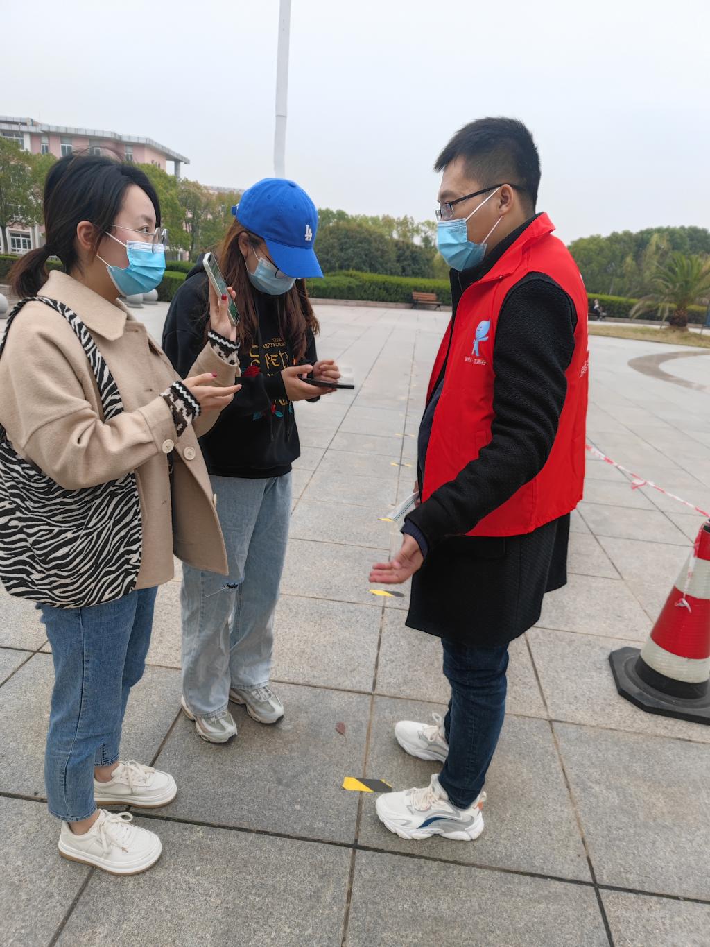 “我一下课就赶紧跑过来了。作为一名普通老师,能够在抗疫中为学校、为同学和老师们做点事,我觉得特别有意义。”经济系王大哲老师如是说。“现场老师和同学们都特别配合我们的工作,佩戴口罩、出示绿码、主动扫码、有序排队,能感受到大家的团结一心,希望能早日渡过难关,恢复线下教学。”统计系教工支部副书记王平平老师有感而发。