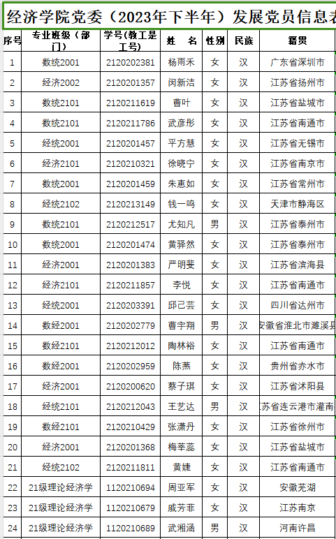 根据《发展党员工作实施细则》有关规定,经学院基层党支部考察、学院党委预审,拟接收杨雨禾等31名同志为中共预备党员。现将名单予以公示:
