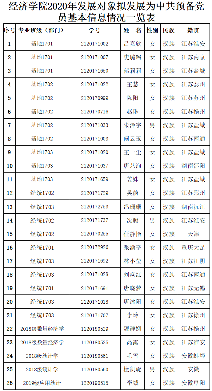 根据《发展党员工作实施细则》有关规定,经学院基层党支部考察、学院党委预审,拟接收吕嘉欣等32名同志为中共预备党员。现将名单予以公示: