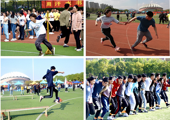 师生奋力拼搏,勇于争先的精神。参加比赛的师生们用尽全力超越对手,拉拉队员们为运动员加油助威,服务人员们辛勤地付出……一幅幅成人漫画