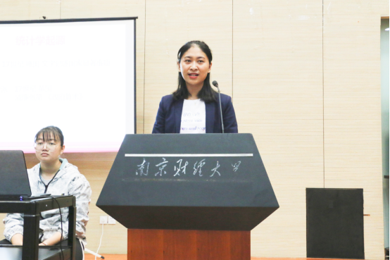 党委副书记袁怡琨致辞,她先简要回顾了往届统计文化节所获成果,并重点介绍了此次统计文化节的举办的意义——通过多种形式的活动,意在培养同学们对统计学的兴趣,增强专业学习热情,在潜移默化之中夯实专业知识基础,同时吸引更多同学关注统计、了解统计,增强同学们的文化自信力。