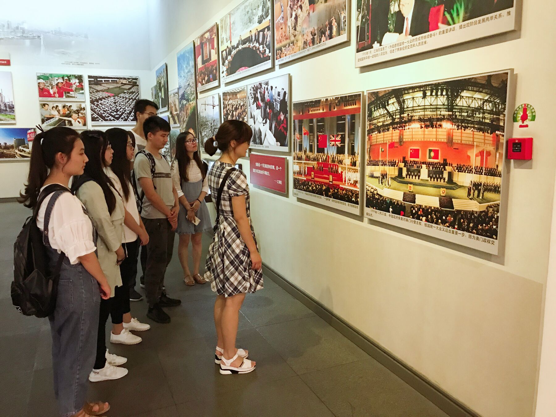 党委副书记郝园园老师号召同学们坚持学习习近平总书记系列重要讲话精神,不断提升自我的党性修养和爱国情怀。7月5日、6日,在本科生第一支部书记聂平老师的带领下,部分本科生党员赴中国共产党的诞生地——嘉兴南湖进行实地学习和实践。在红船旁,党旗下,党员同学们庄严地重温入党誓词;在南湖革命纪念馆,党员同学们认真参观,惊叹于中国共产党成立96周年以来带领中国人民走过的辉煌发展之路。同学们驻足于紫荆花电子显示屏下,望着邓小平同志与撒切尔夫人的合影,更加真切地体会到祖国强大、民族复兴的伟大意义。