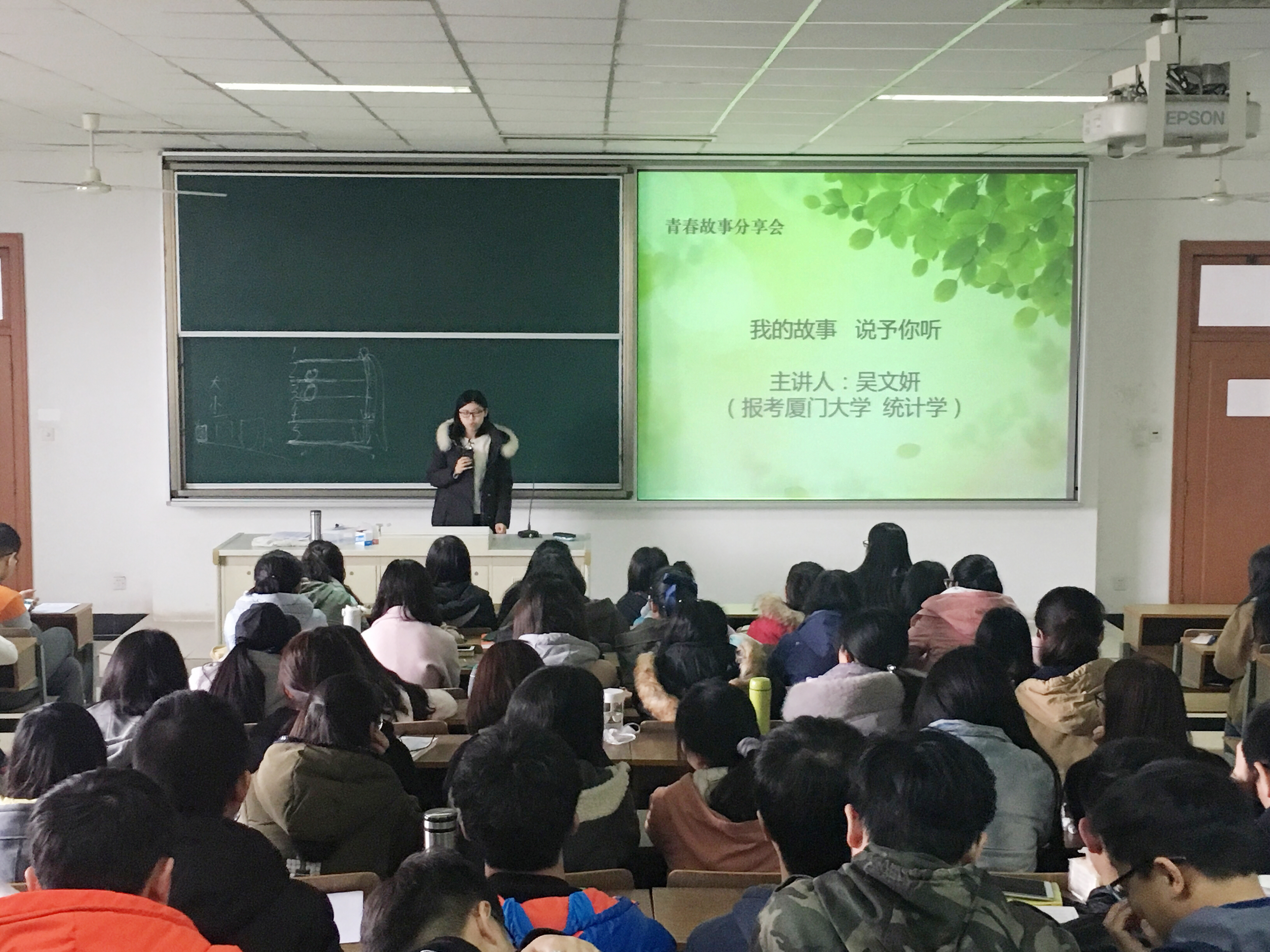 今年考取厦门大学的吴文妍和上海财经大学的毕朝瑜同学分享了各自大学四年的成长经历和考研心得,同时勉励在场学生一定要多读书、读好书,积极参加各项有益的第二课堂活动,科学合理地进行大学生涯规划,提升能力,充实自己,完满度过大学生活。