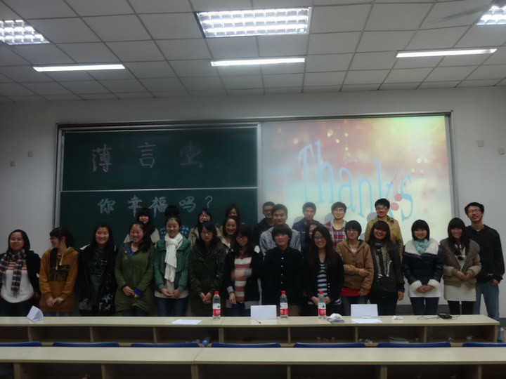 2012年11月9日晚七点整,专一101,厚薄学社主办的第一届薄言堂“你幸福吗?”演讲比赛正式开始。本次比赛的评委由成人漫画