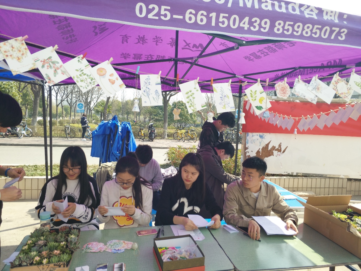 与环境保护协会共同举办“树与春的约会”植树节外场活动,在我校仙林校区中苑食堂外广场欢快举行。活动现场热闹非凡,秩序井然,引来同学们驻足参与。