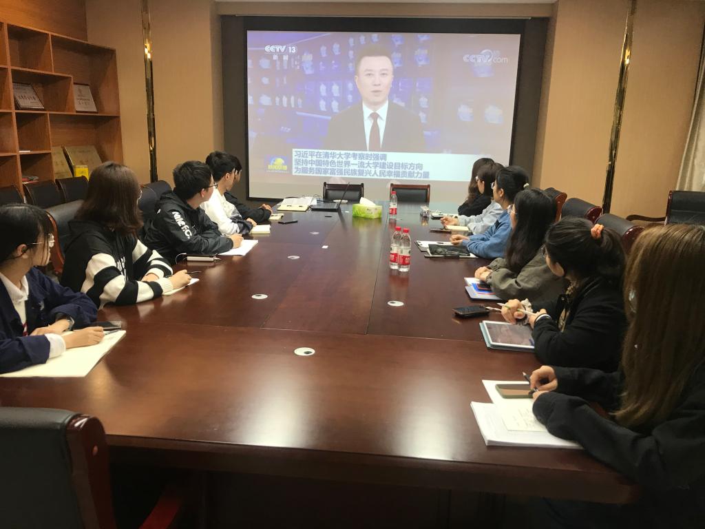 会上,大家集体观看了《新闻联播》相关视频。然后,分团委老师梁少颖带领大家集中认真学习了习近平总书记在清华大学考察时的重要讲话。习近平总书记在清华大学考察时强调,百年大计,教育为本。我们要建设的世界一流大学是中国特色社会主义的一流大学,我国社会主义教育就是要培养德智体美劳全面发展的社会主义建设者和接班人。习近平总书记强调了高等教育的重要性,指出:“党和国家事业发展对高等教育的需要,对科学知识和优秀人才的需要,比以往任何时候都更为迫切。”“我国高等教育要立足中华民族伟大复兴战略全局和世界百年未有之大变局,心怀‘国之大者’,把握大势,敢于担当,善于作为,为服务国家富强,民族复兴,人民幸福贡献力量。”同时,习近平总书记对青年人寄予厚望,“广大青年要肩负历史使命,坚定前进信心,立大志、明大德、成大才、担大任,努力成为堪当民族复兴重任的时代新人,让青春在为祖国、为民族、为人民、为人类的不懈奋斗中绽放绚烂之花。”