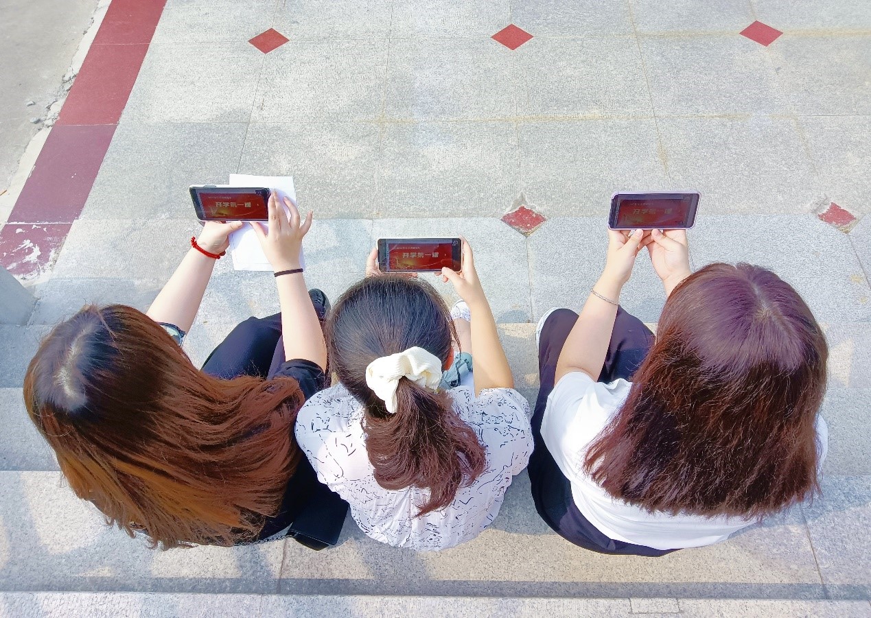 2021级研究生在手机上收看会议实况