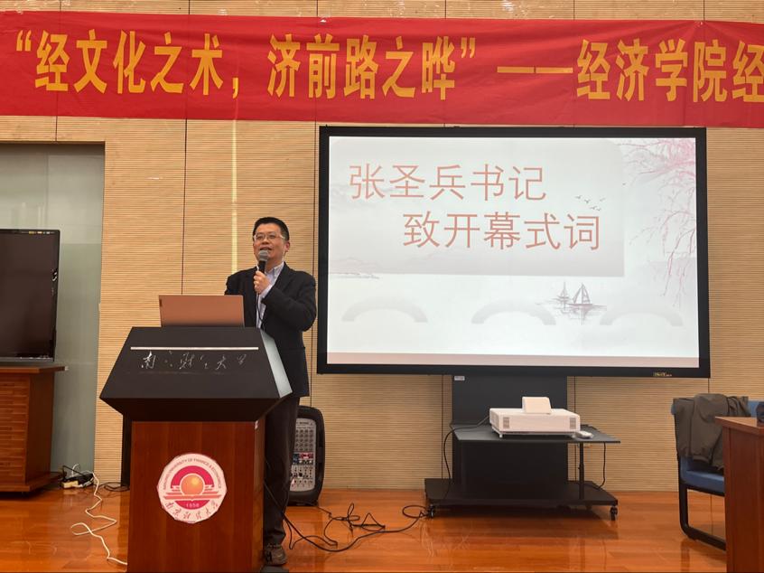 张圣兵书记作开幕式致辞。他表示,经济学是一门与生活息息相关的学科,不仅能帮助人们认识世界,透析事物的真相,而且能指导科学决策;也是一门与国家发展紧密相连的学科,从中能了解国家经济发展情况,进而选择适合自身与国家发展紧密联系的道路。无论是理论经济学,还是应用经济学,都需要我们注重从课本走向生活,注重实践培养。希望同学们通过经济学术节系列活动进一步加深对经济学的理解,在实践中检验专业知识的掌握程度,进一步提升综合素质,明晰未来规划。