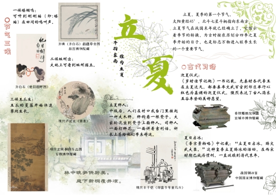 2023年5月18日是第47个国际博物馆日,3日后便是“小满”节气。博物馆是毗连过去、现在与未来的重要桥梁,而“廿四节气”是中国上古农耕文明的产物,将天文、农事、物候和民俗实现巧妙结合,衍生了大量相关的岁时节令文化。本活动围绕“延续历史文脉,坚定文化自信”的主题,融二十四节气的知识普及与文化传承于一体,以展览展示与互动相结合的方式,全方位诠释以二十四节气为代表的中华优秀传统文化的丰富内涵。