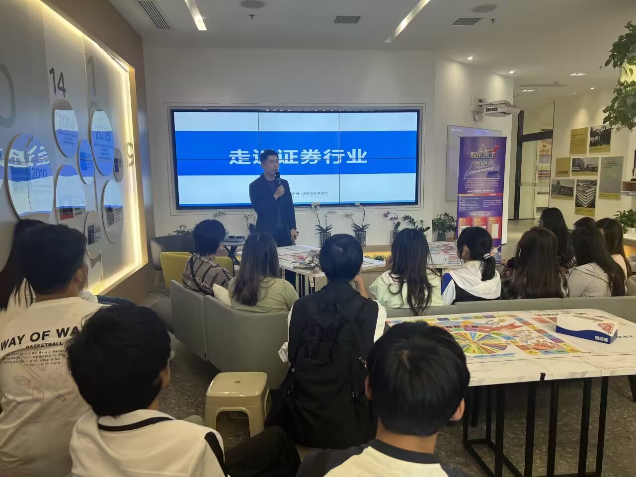 随后,同学们来到华泰证券投资者教育基地开展金融知识研学环节。这里不仅是金融知识普及的平台,也是提升投资者金融素养的重要场所。华泰证券工作人员结合真实案例对校园贷、非法集资和杀猪盘这三类主要的金融市场风险进行详细讲述,提醒同学们要明辨是非,抵御诱惑。