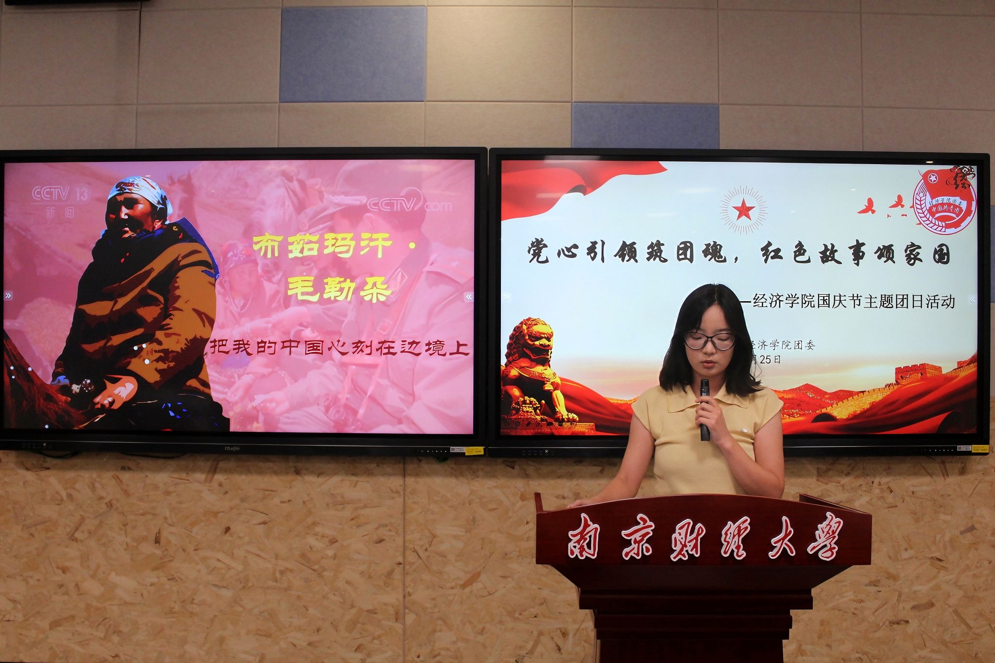 少数民族学生代表阿斯努尔﹒巴合提别克同学带来布茹玛汗﹒毛勒朵的护边传奇。布茹玛汗﹒毛勒朵在冬古拉玛山口护边六十多年,被誉为“活界碑”“冬古拉玛大妈”。团员们对她留下十万多块刻着“中国”的石头界碑、累计救助守边官兵156人次的事迹叹为观止,纷纷称赞她是忠诚与勇敢的代名词,立志把这份真正的爱国情怀与奉献精神运用在自己的实际行动中。