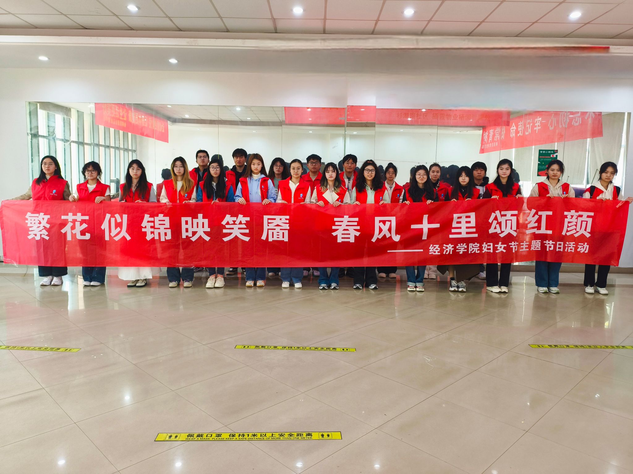 于杉湖路社区举办“繁花似锦映笑靥,春风十里颂红颜”妇女节主题活动,学院部分同学与社区居民共同参与。