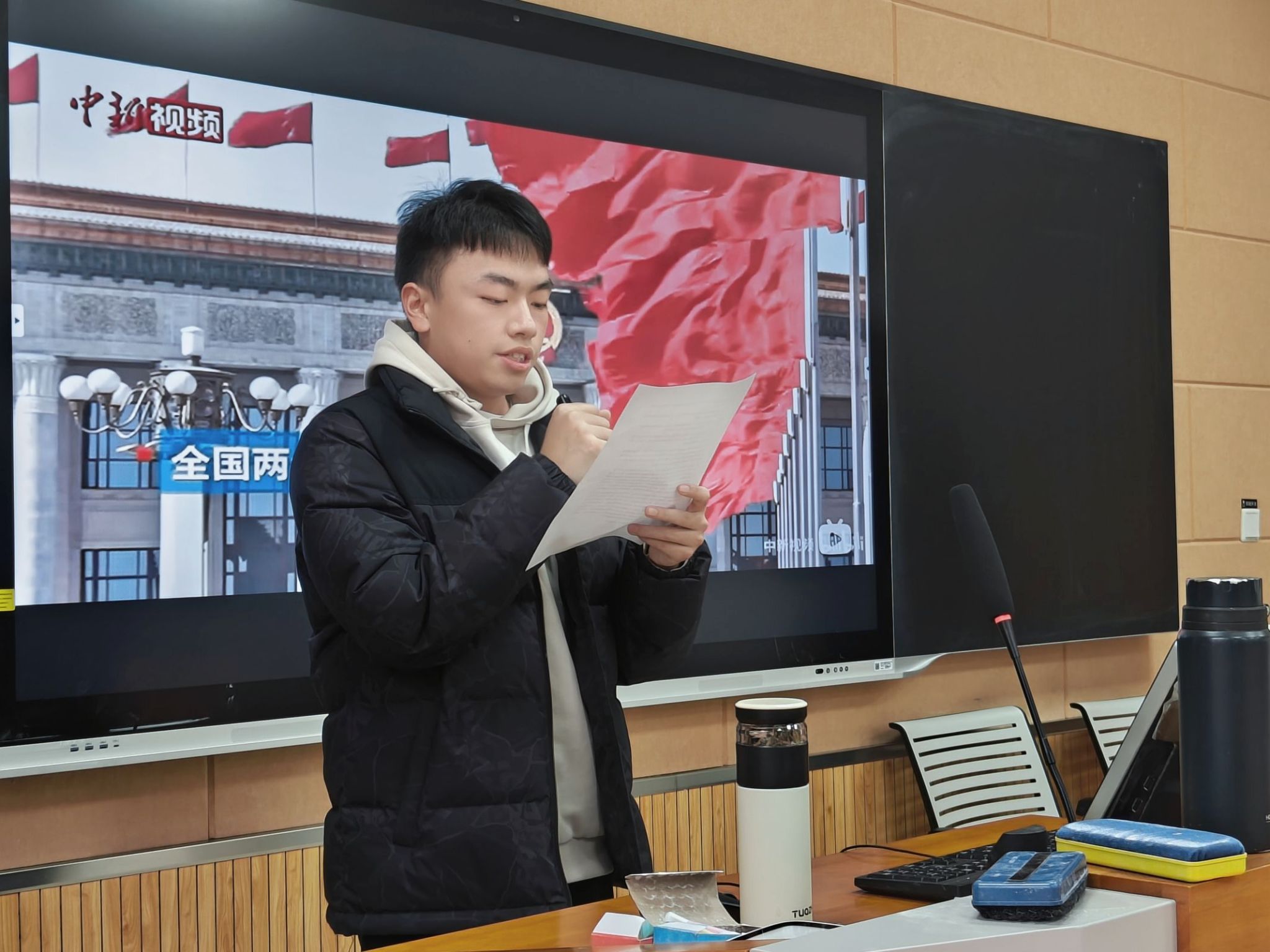 代表陈宇针同学对全国人大代表郑功成提出的“将反就业歧视纳入法律”的建议发表看法,强调青年在大学期间应注重提升综合素质,以更好地应对就业挑战。国贸学院代表周若语同学围绕教育、人才和就业问题发表见解,指出新时代大学生应以全国两会精神为指引,积极投身社会实践,在实践中增长才干。财政与税收学院代表罗薇同学就教育公平、科技创新和就业问题发言,表示大学生应具备对国家战略的高度参与感和使命感,为国家发展贡献力量。金融学院代表邵歆怡同学则针对政府扩大就业的报告发表观点,呼吁青年关注人工智能政策导向和技能型人才发展方向,提前做好职业规划。