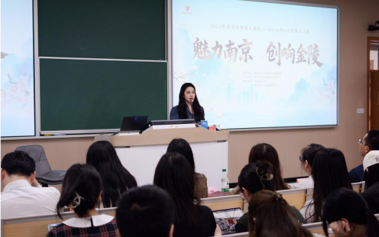 在博观楼202举办以“魅力南京 创响金陵”为主题的南京市2025年创业大讲坛系列活动之“DeepSeek创业入门课”,旨在为青年大学生提供政策解读与创业指导,激发创新创业热情。