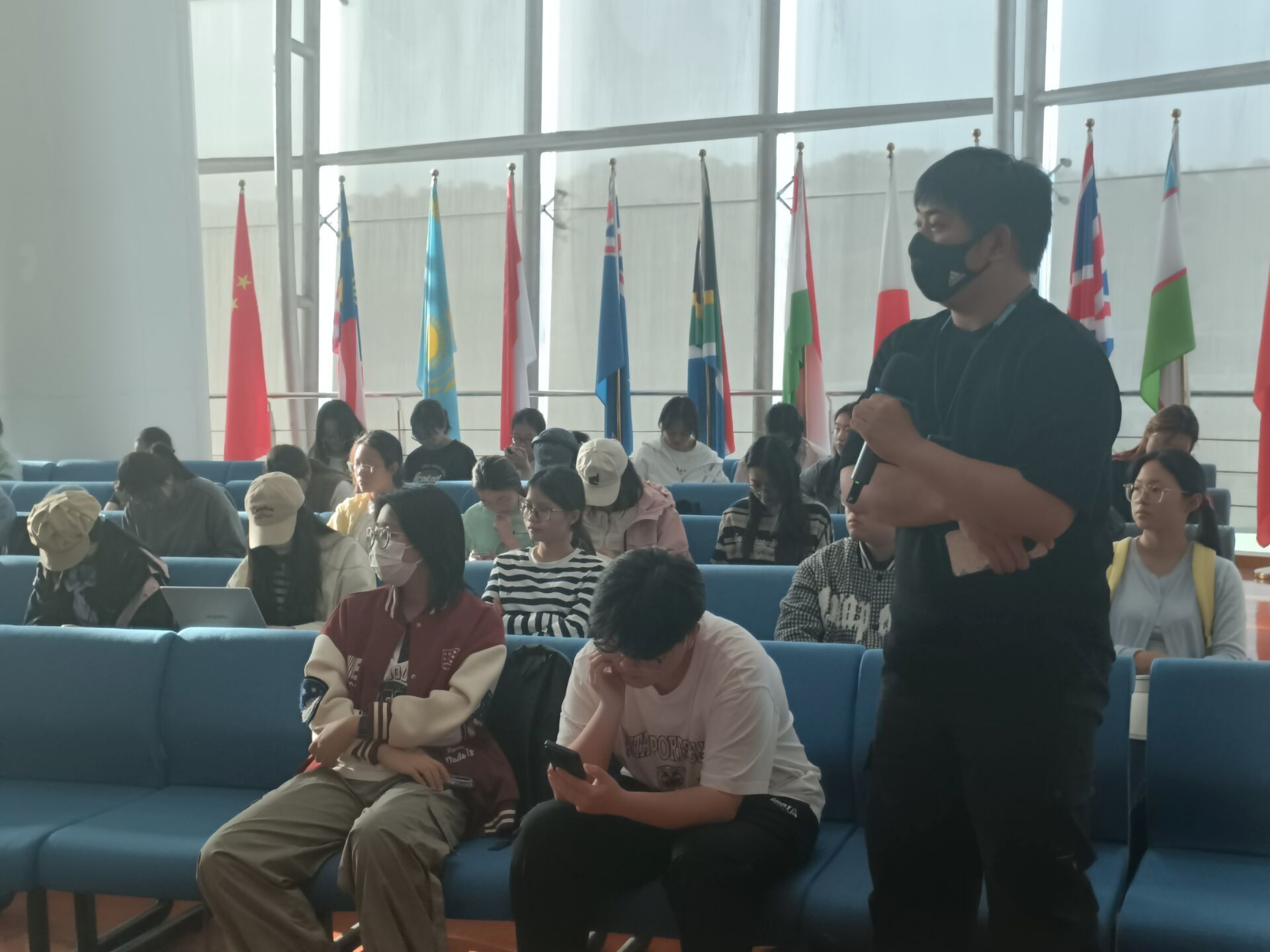 在提问环节,现场气氛热烈。同学们围绕“竞赛选题建议”“竞赛论文中数据的获取途径”等问题踊跃提问,刘老师耐心解答,并鼓励大家培养敏锐的问题意识,在扎实的文献基础上开展创新性研究,师生间的深入交流将现场学术氛围推向高潮。