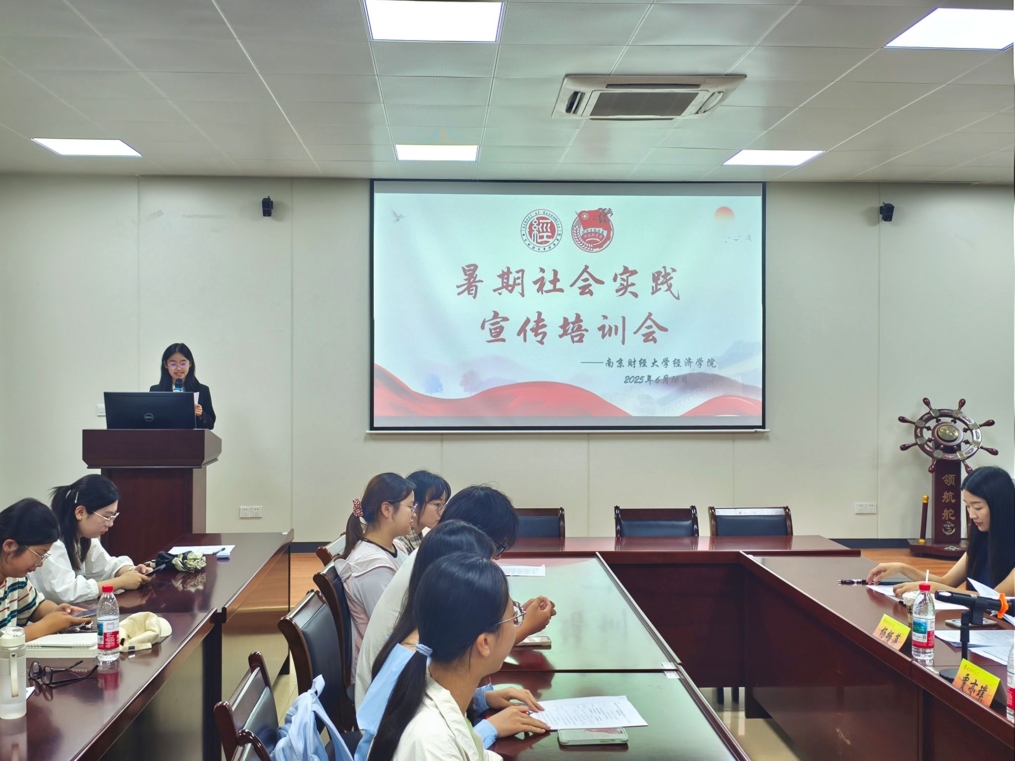 特邀新华日报全媒体科教新闻部主任助理杨频萍来校,为即将奔赴祖国各地开展实践的队伍开展宣传培训。学院党委副书记贾亦璞主持培训会,团委书记潘怡及学院重点暑期社会实践团队全体成员参与学习。