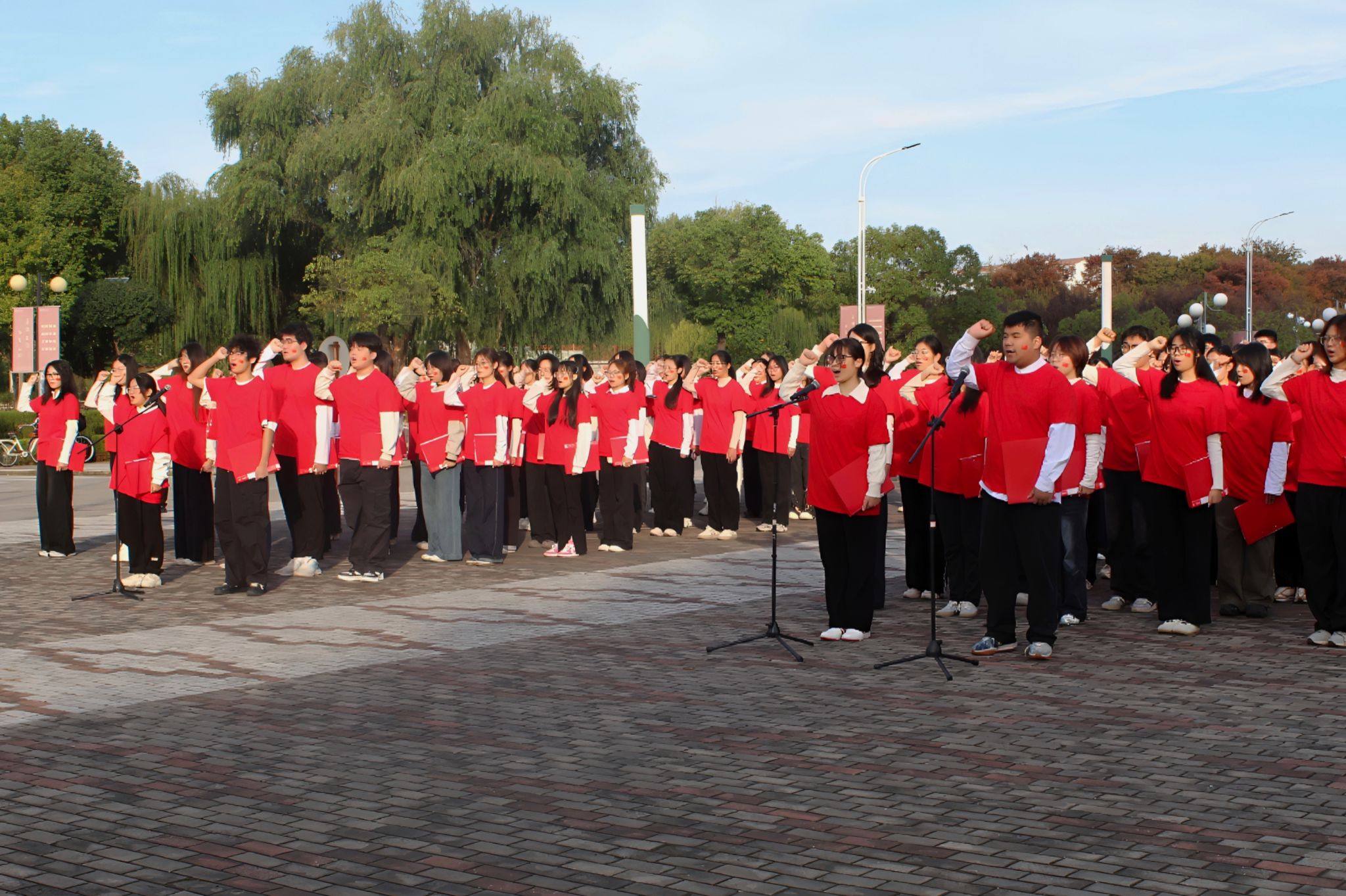 师生在国旗广场举办“六九华诞青春颂,赤子同心国旗扬”庆祝69周年校庆升国旗仪式。校团委书记张蔚伟、学院党委副书记贾亦璞、院团委书记潘怡出席活动,学生代表100余人参加活动。