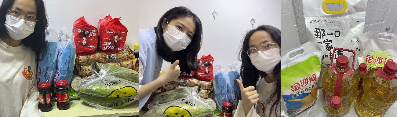 “东西真的非常非常多,和我对接物资发放的人说特地给了我们两份,让我和合租的室友分一分。非常非常感谢老师和学长学姐们。”