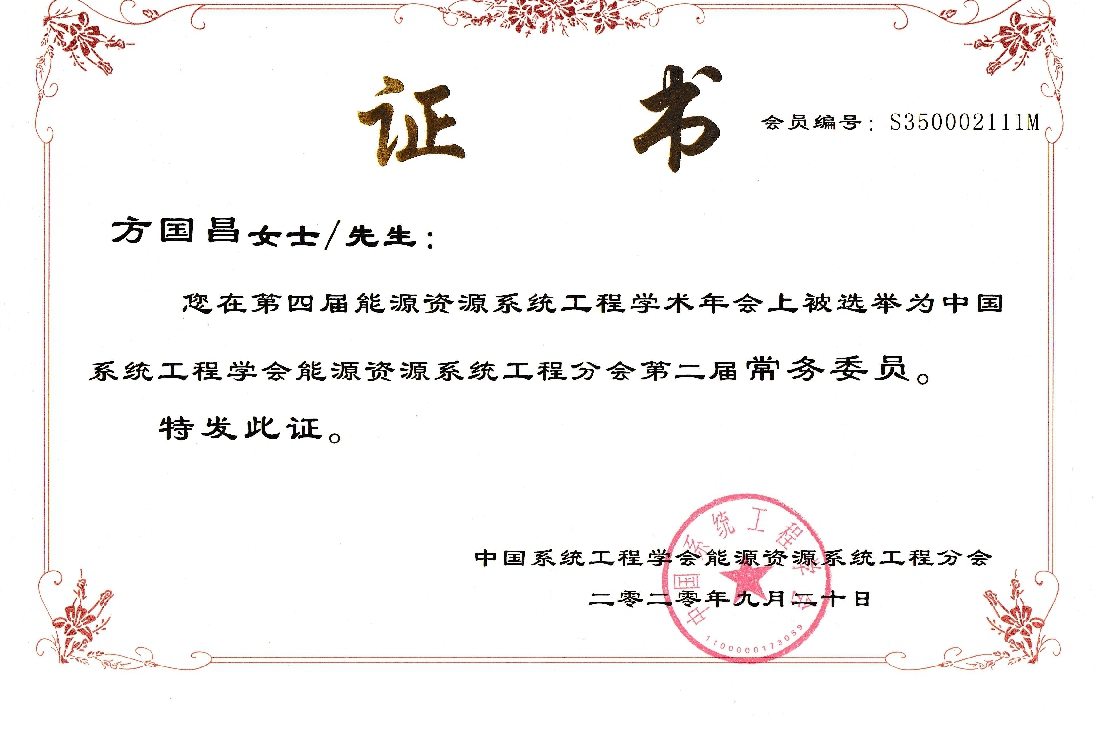方国昌教授受组织方邀请,担任分会场主持人,对来自中国科学院大学、北京理工大学等知名高校硕博士的成果进行点评。方国昌教授受聘为(第四届年会中当选)中国系统工程学会能源资源系统工程分会常务委员。