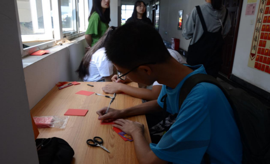 稍向前走,新生们被走廊上的“红包心愿墙”所吸引,金色的背景板上,整齐地粘贴了学院为每一个新生准备的红包,包含着学院老师和同学们对新生的美好祝愿。新生们打开红包会看到老师和同学们的暖心赠言,还有可能收获带有学院特色的惊喜礼物。同时,学院还为每一位新生准备了心愿卡片,新生们纷纷在卡片上写下自己入学的感想和美好愿望。
