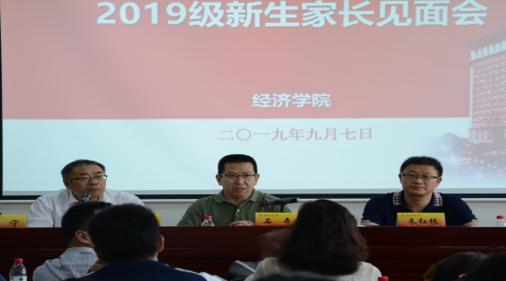 2019级新生家长见面会在德经楼307会议室举行。校党委常委、宣传部部长石奇,学院党委书记陈耀辉,院长朱红根,院党委副书记袁怡琨,经济系和统计系主任及教师代表出席此次会议。会议由陈耀辉书记主持。