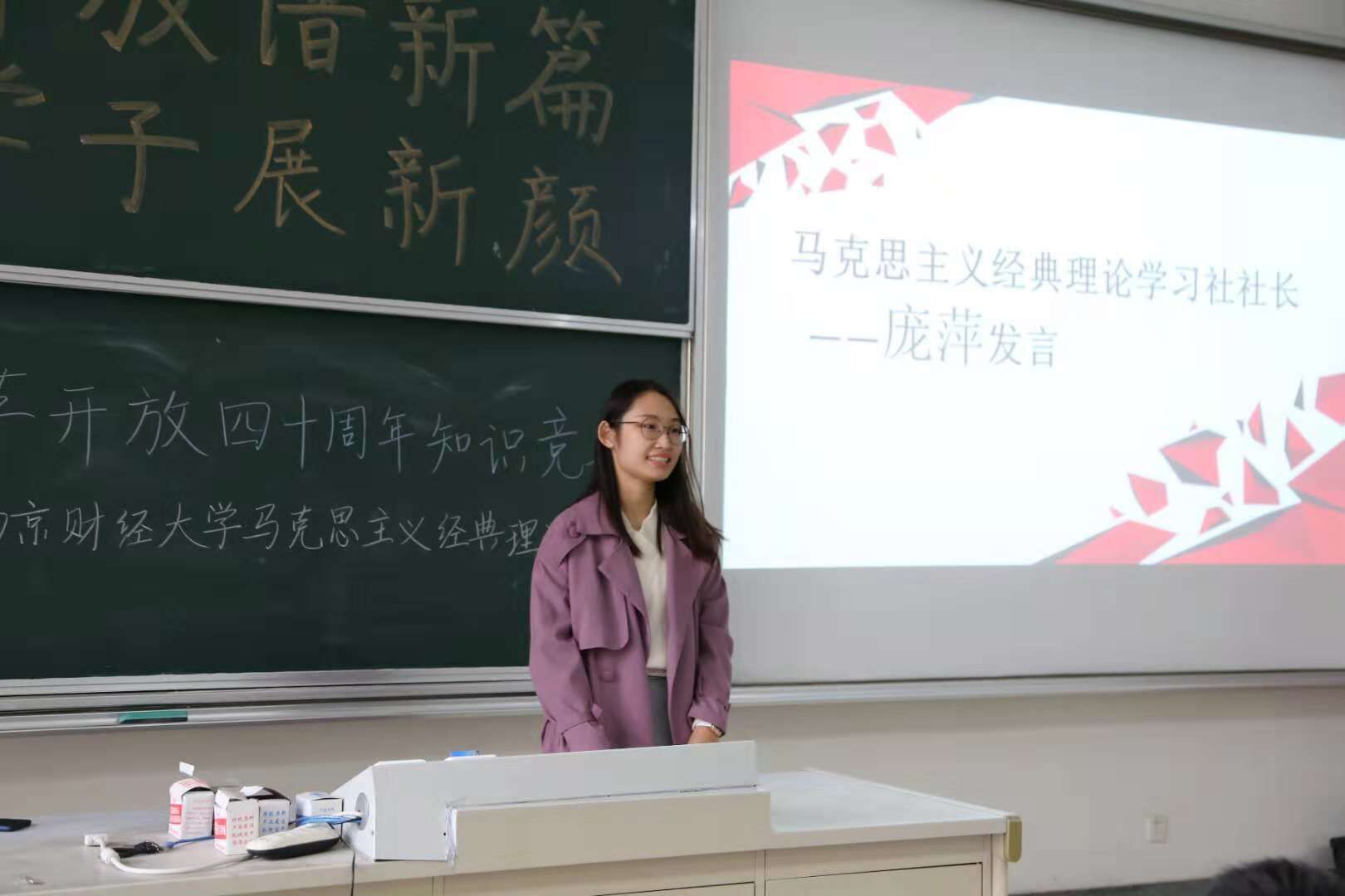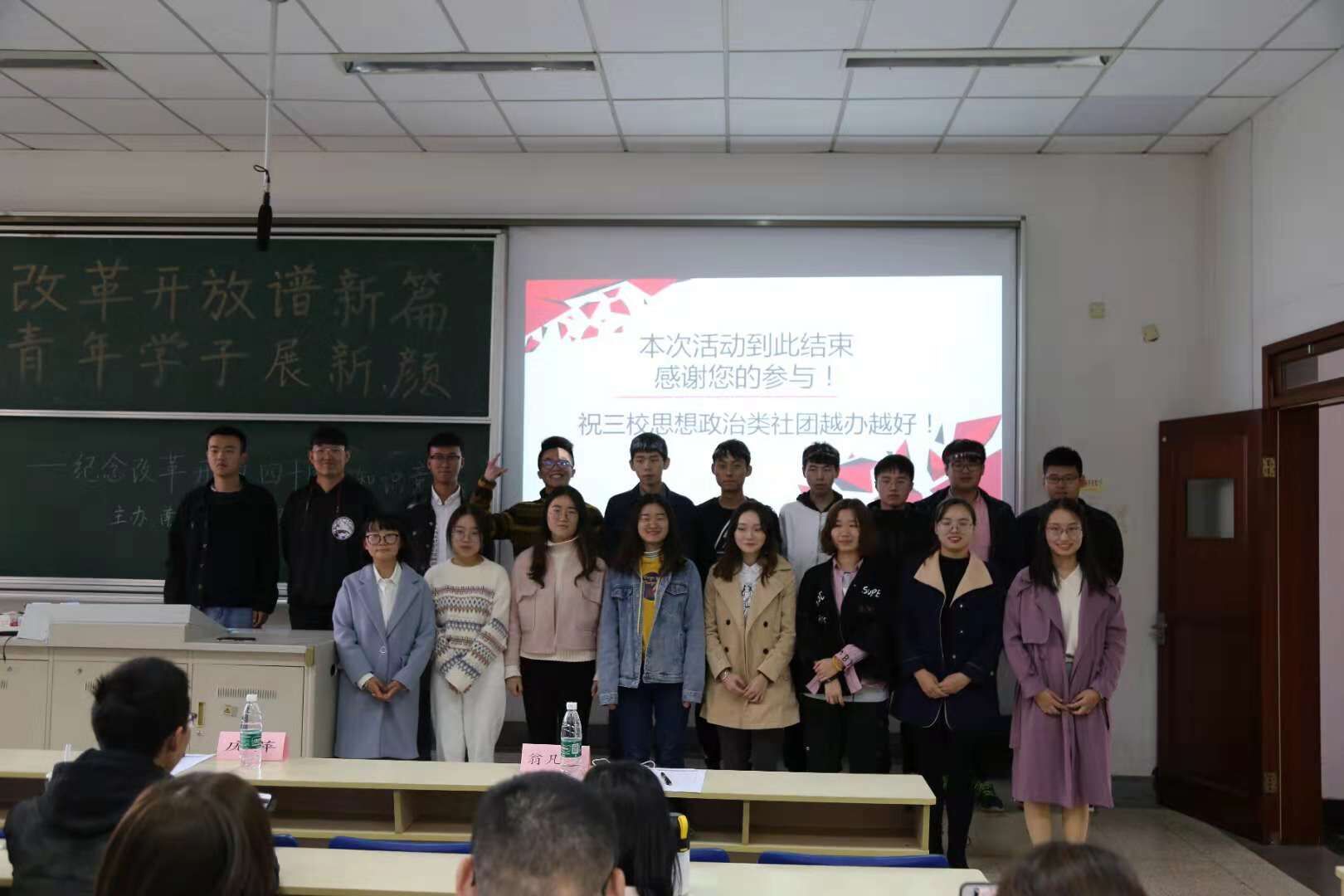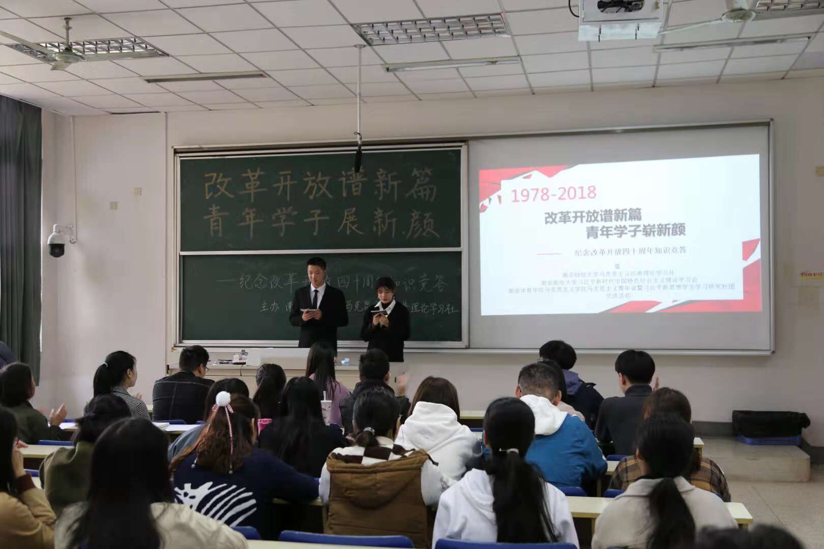 11月11日下午,成人漫画 马克思主义经典理论学习社联合南京邮电大学习近平新时代中国特色社会主义思想学习会、南京体育学院习近平新思想学生学习研究社,在德经楼101举行了“改革开放谱新篇,青年学子展新颜”——庆祝改革开放四十周年知识竞答活动,成人漫画 党员、入党积极分子们到场观看了比赛。 活动正式开始前,成人漫画 马克思主义学社社长庞萍、南邮习学会会长吴忧、南体马院新思想研习社团社长翁凡棋依次进行了发言。首先,庞萍同学以主办方身份对来自南邮、南体的社团同仁们表示了热烈的欢迎和衷心的感谢,同时对此次知识竞答活动提出了要求和期望,并表示希望今后加强三校思想政治类社团的交流与合作。吴忧同学对社团的未来发展方向提出了热切展望,翁凡棋同学则表示希望加强社团间的联系并欢迎兄弟院校社团去南体进行交流。 本次庆祝改革开放四十周年知识竞答活动分为必答题、抢答题和风险题三个环节。选手们一个个你追我赶、不甘示弱,对改革开放四十年的历史都有较好的理解和掌握,场上竞争十分激烈。经过激烈的角逐,南财队获得了卓越青年奖,南邮、南体则分别精神文明奖和思想进步奖。活动最后进行了各队的颁奖和合影环节。 此次改革开放四十周年知识竞答宣扬了改革进取的创新精神,促进了青年学子对相关历史的深入了解,展现了当代青年学子积极向上的精神风貌。