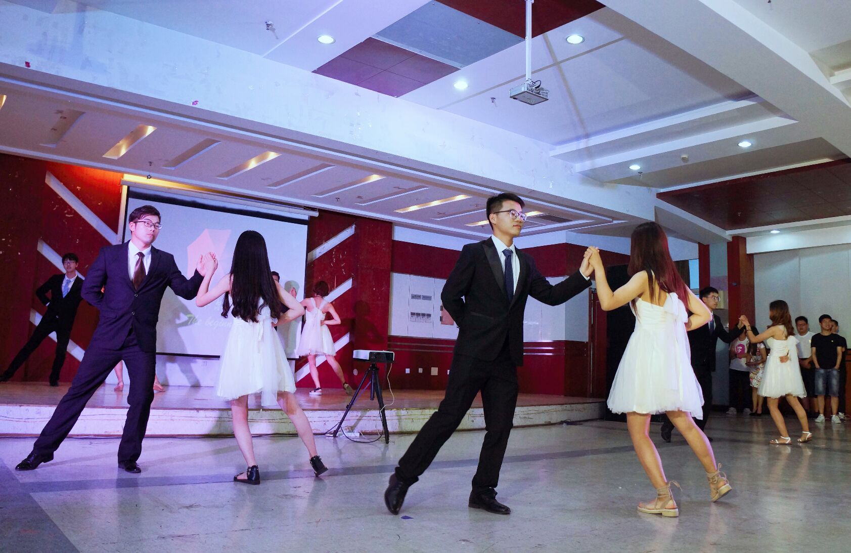 音乐响起,一曲爱的华尔兹,甜蜜动人,拉开了酒会的帷幕。外教Jeffrey以他独特的嗓音为大四学子们带来了一首吉他弹唱,赢得阵阵掌声。随后全体观看毕业生视频,学长学姐们回首过去,反思得失;驻足当下,感恩陪伴。带着即将离别的伤感和对彼此前程的祝福,他们端起酒杯,第一杯酒,敬各位同窗好友!一杯酒,无限深情。