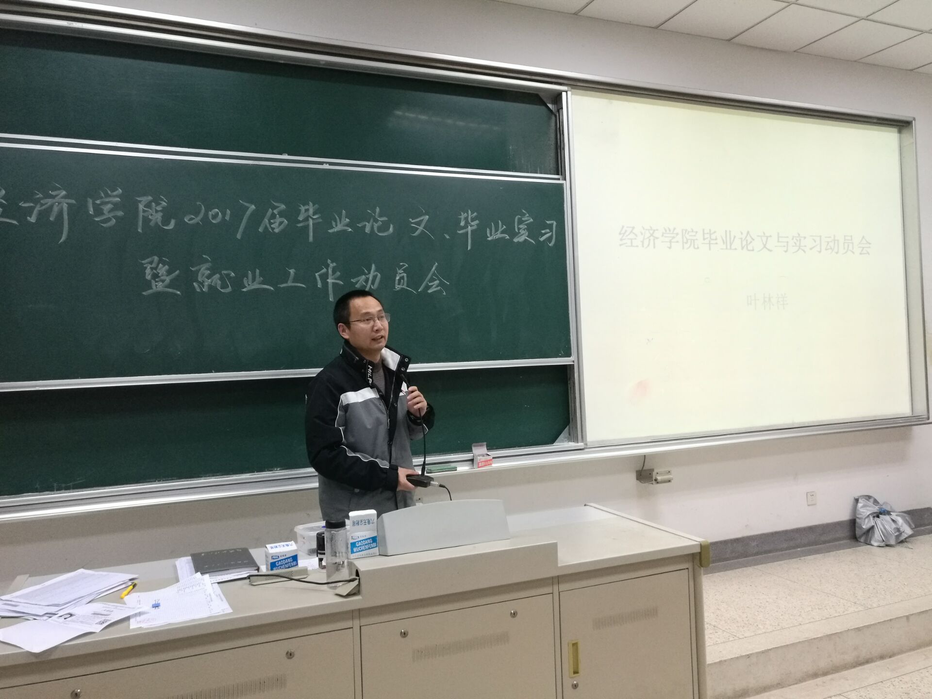 会上,叶林祥老师就如何协调好找工作、考研、毕业论文的撰写做了详细的指导和说明,并就如何找到一份好工作,个人的人力资本和就业机会匹配的难度和同学们进行了深入的交流,希望同学们正确看待自己的第一份工作,树立正确的就业观和择业观。对于如何写好毕业论文,叶老师详细介绍了毕业论文的要求与纪律,指出本科生毕业论文要有明确的题旨和问题意识,有求证和实证意识,观点要有实际资料和数据的支撑,要反复阅读重要的参考文献。叶老师并强调要多和论文指导老师交流,写出一份高质量的毕业论文,为自己的大学生涯交上一份满意的答卷。