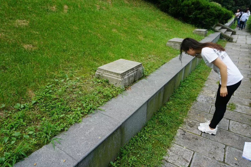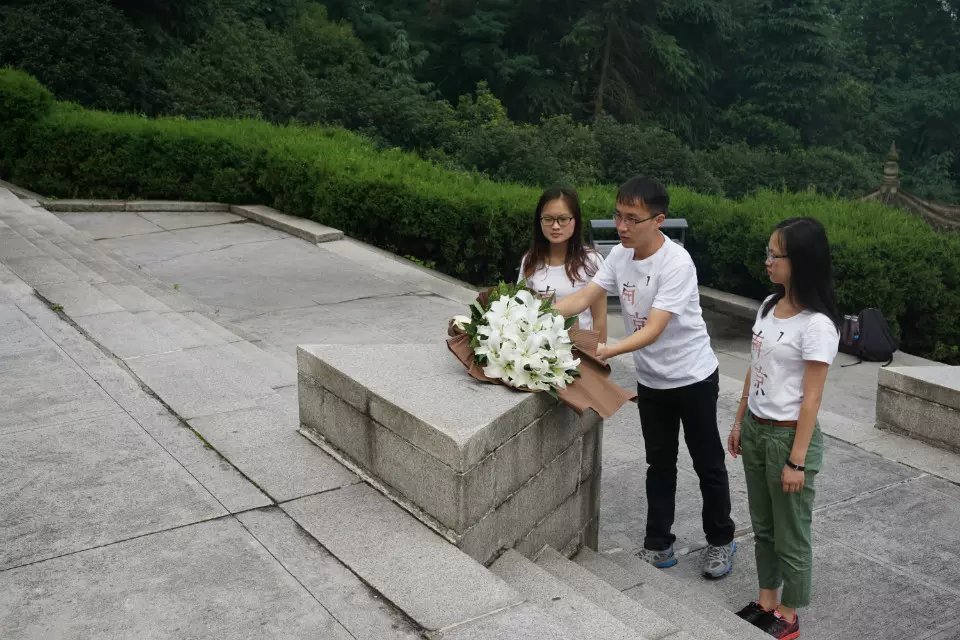 “拂去岁月尘埃”暑期实践团队在周绍东老师的带领下赴南京抗日航空纪念馆悼念抗战阵亡航空烈士。团队成员沿着航空烈士公墓中轴线步入航空烈士公墓。在抗日航空烈士纪念碑前,小组成员举行了献花仪式,全体成员鞠躬默哀悼念。