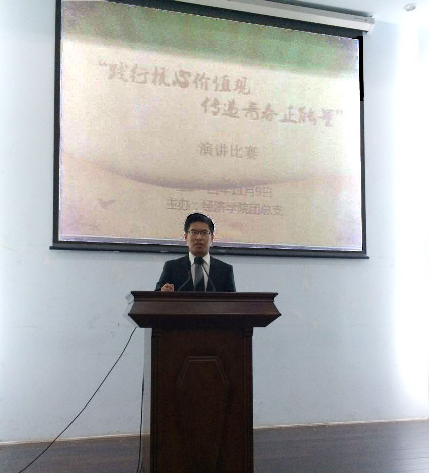 此次演讲以“践行核心价值观,传递青春正能量”为主题,邀请14级辅导员黄晓娟老师、学生会副主席陈茜、辩论队领队张剑禹担任评委。经过几周的班内选拔准备,来自 14级6个班级的共14位同学参加了比赛。