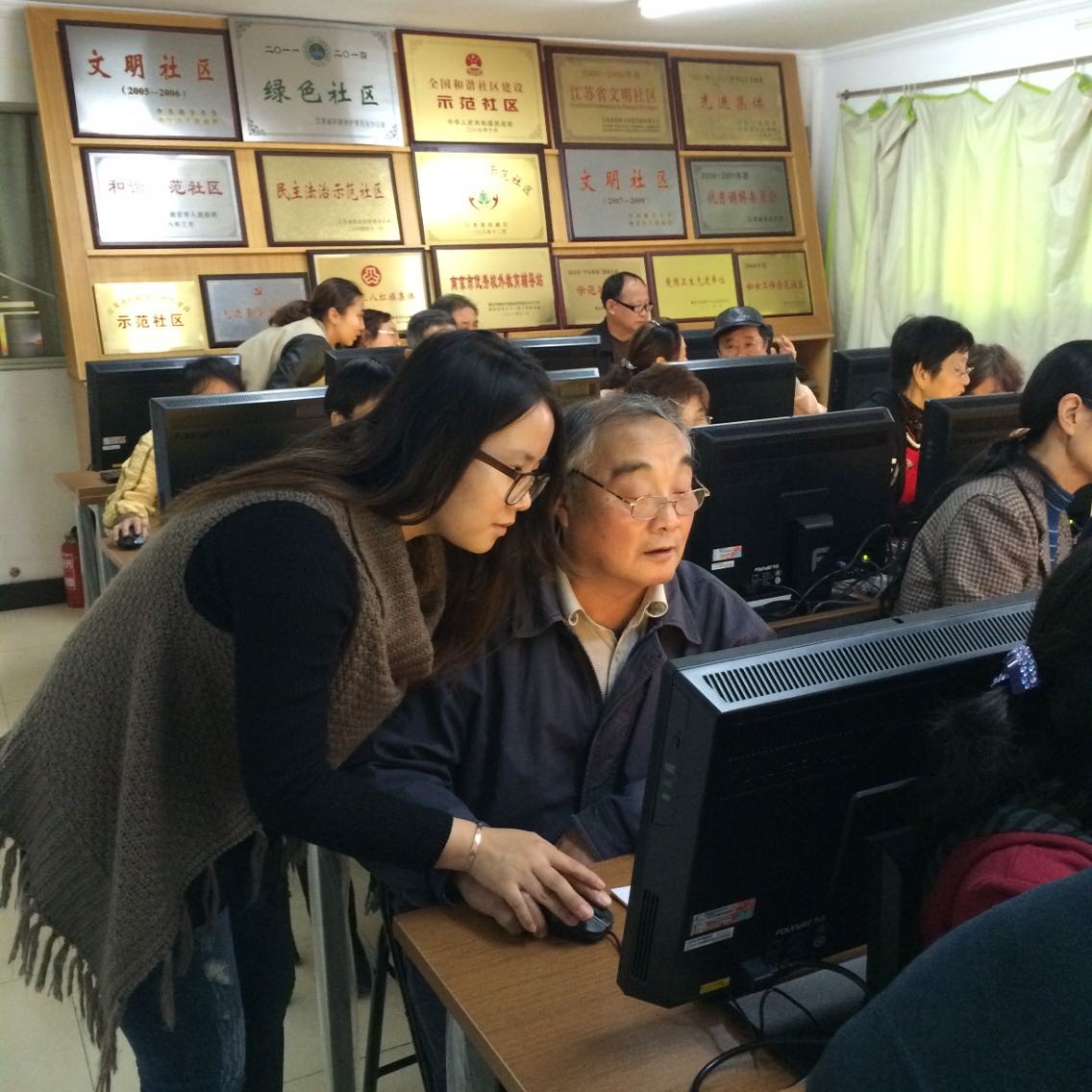 团总支志愿服务队走进社区开展电脑培训志愿服务的一幕。