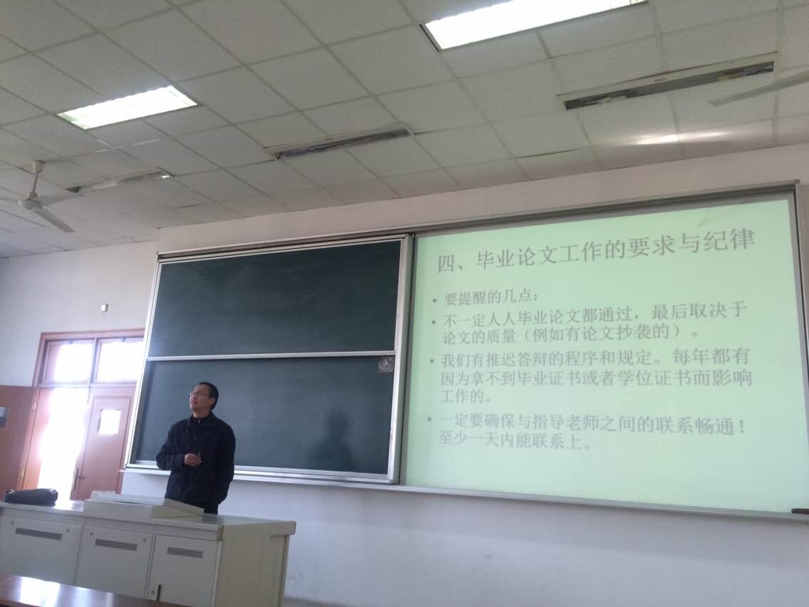 各班级学生代表就开学以来任课老师授课及学习中遇到的问题进行了集中反馈,老师们就同学们提出的问题做了认真记录并进行了一一解答。老师们建议各班学习委员广泛搜集同学们的意见,及时向老师反馈;此外,老师们还就低年级同学如何克服迷茫情绪,尽早树立目标,明确学习任务提出了建议;就毕业年级同学如何协调好学习与求职之间的冲突提出了建议。