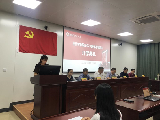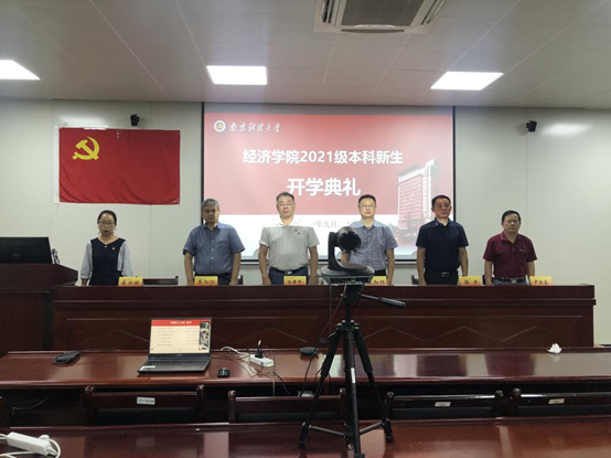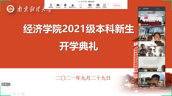 2021级新生开学典礼以腾讯会议形式线上直播。院党委书记陈耀辉、院长朱红根、党委副书记袁怡琨、副院长崔向阳、尹敬东、韩中、学工秘书尹海燕、分团委老师兼辅导员梁少颖等参会。党委副书记袁怡琨主持典礼,2021级全体新生在各自的宿舍观看直播,线上参与。