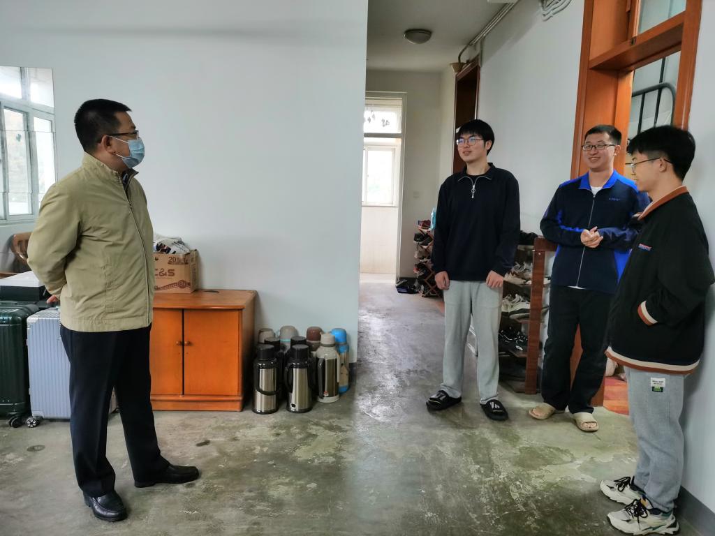 “你们的家乡是哪里,回到学校吃的住的还习惯吗”“新学期有什么新规划”“对学校和学院有什么诉求和建议”……在学生宿舍,石奇部长与同学们面对面交流,详细了解同学们学习、生活、就业等方面的情况及遇到的困难,认真听取同学们对于考研复习、疫情防控、食堂用餐、寝室生活等方面的诉求和建议。石奇部长表示,学校始终把同学们的发展需求放在第一位,全力以赴确保各项措施落实到位,第一时间回应学生诉求,尽最大努力满足在校学生学习生活需要,不断优化校园服务,为广大同学营造安全、舒适、温馨、便利的校园学习生活环境。