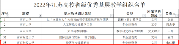 经济学专业教研室成立于1996年,团队现以朱红根教授为负责人,团队在建设中全面推进学习过程管理机制,贯彻课程思政,坚持立德树人根本任务,全面构建了科学合理的教学质量保障,有效形成了教学质量持续改进机制,确保人才培养质量。
