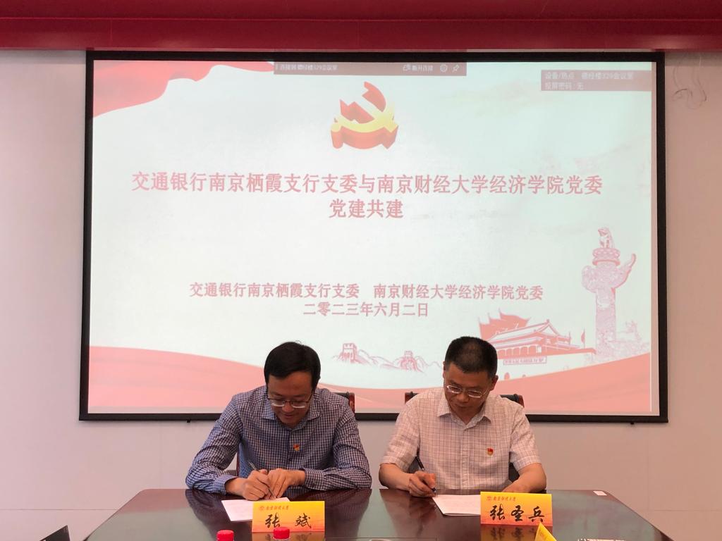 党委和交通银行南京栖霞支行支部将在创新党建形式、建立互动机制、拓展支部活动等方面开展共建,进一步整合优质资源、搭建合作平台,不断发挥各自特色与优势,以党建共建为牵引,推进常态联系机制、多方联动机制,资源共享机制、协同育人机制等,在创新“党建+”模式过程中,有力推动学院党建工作提质增效。