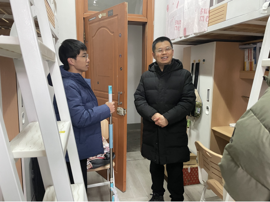 2月24日,党委书记张圣兵老师、党委副书记贾亦璞老师一行,前往学生宿舍,看望返校学生,详细询问了同学们假期的学习生活情况,引导同学们及时调整状态,养成良好的作息习惯,以更加饱满的精神和热情迎接新学期的到来。并对宿舍内违规使用发热类违禁电器、带有储电功能设备人走不断电、在宿舍内吸烟等问题进行排查,对可能出现安全隐患的进行记录并迅速督促整改。