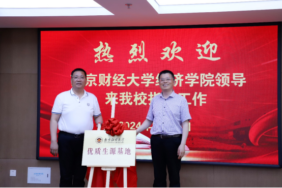 基本情况、学科特色、学生发展等情况进行介绍,特别强调了南财在人才培养方面做出的创新机制和举措,希望以此次“优质生源基地”共建挂牌为契机,进一步加强合作与联系,开展师生互访交流、招生咨询与宣传、科普讲座进中学等活动,为社会培养更多高素质创新型人才。