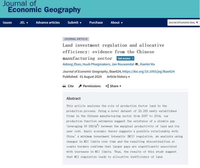 赵爱栋博士与荷兰阿姆斯特丹自由大学等学者的合作论文“Land investment regulation and allocative efficiency: Evidence from the Chinese manufacturing sector”被城市与区城经济学国际顶级期刊Journal of Economic Geography正式接受发表。成人漫画