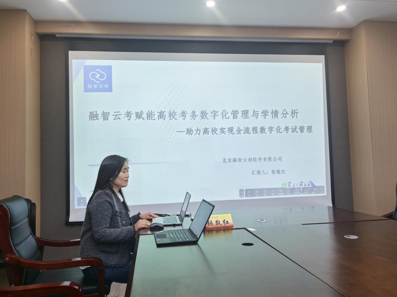 在德经楼323会议室举办了“名师名课示范观摩”交流会。本次会议以“一体化智能考务管理与学情评测分析系统在高校考务数字化工作中的应用及优势”为主题,特邀北京融智软件有限公司商务经理张敬红担任主讲嘉宾,学院骨干教师及各系代表共同参会,围绕智能化技术如何革新传统考务流程展开深入探讨。