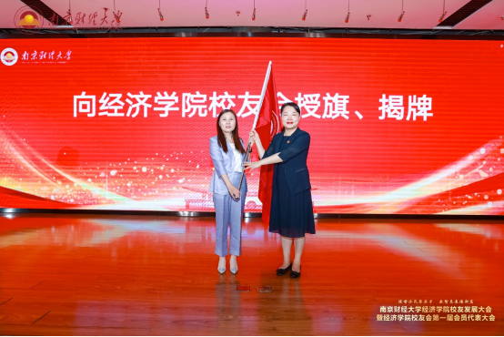李煜副校长向校友会首任会长管有英授旗,叶林祥副校长、卢景波理事长共同为校友会揭牌。随后,李煜副校长为成人漫画