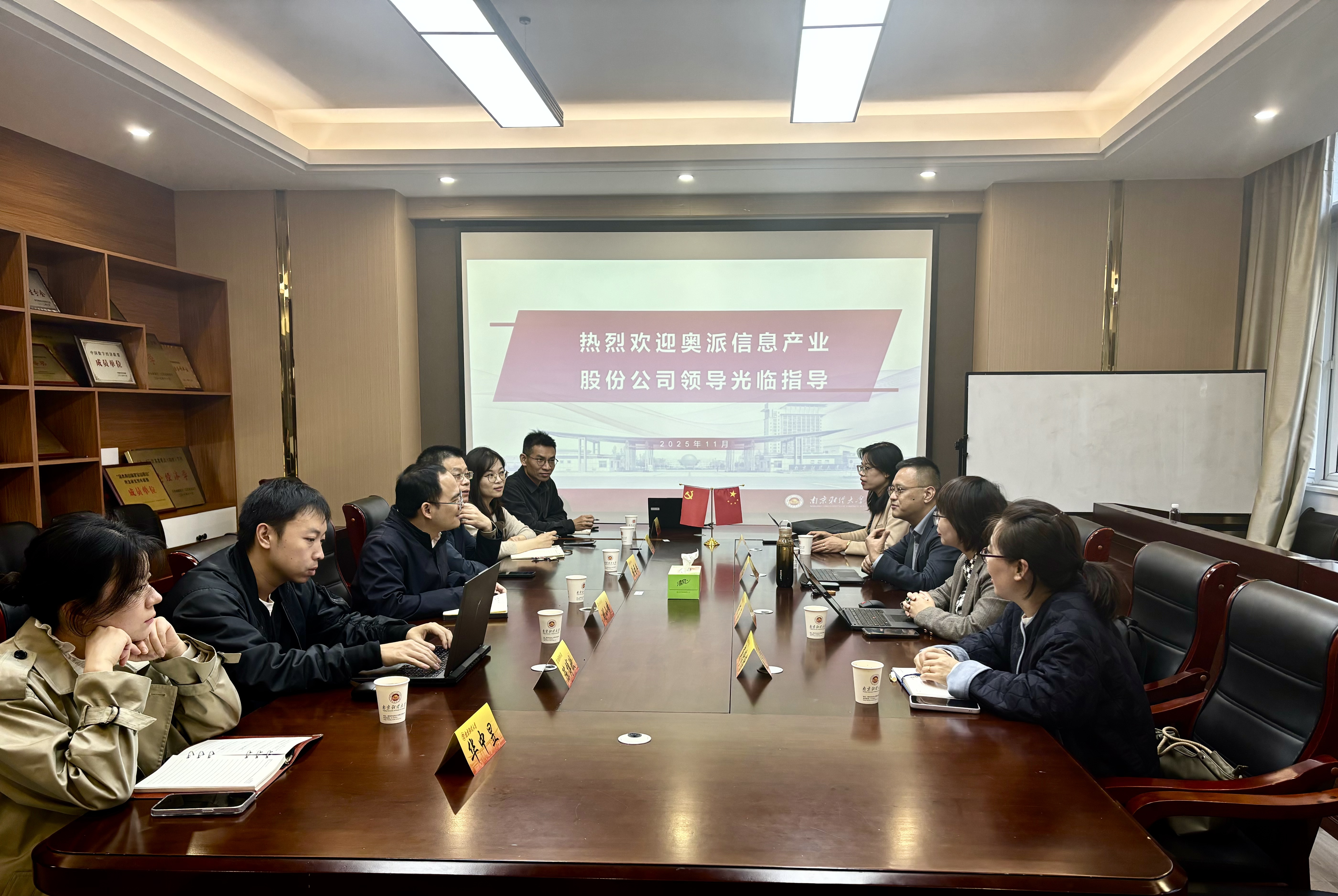 的热情接待表示感谢,他介绍了南京奥派信息产业股份公司的基本情况、产业布局以及科技创新思路,指出公司深耕教育数字化领域多年,始终聚焦“人工智能+教育”融合发展,助力高校实现教学全流程智能化升级。