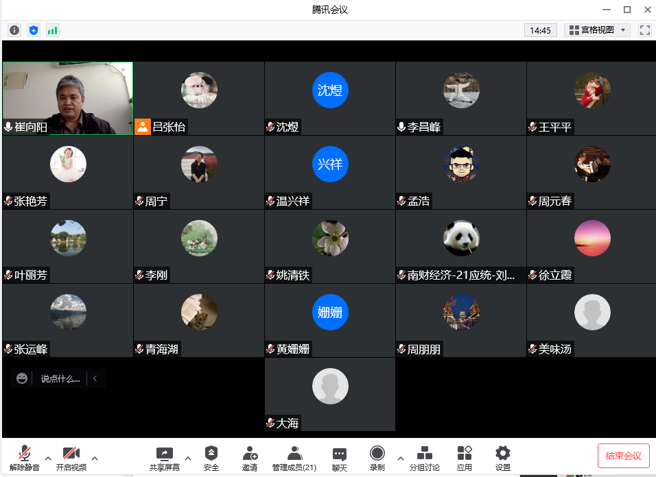 近期研究生工作进展情况,与会教师们围绕研究生教学、研究生管理和招生就业等问题展开了热烈讨论。此外,与会教师们也就疫情新形势下提高研究生教学工作质量的方法展开交流与分享。部分老师反映,线上上课的方式比线下课更方便展示教学内容。在教学质量的把控上,老师们采取学习通、雨课堂发放问题与提问相结合等多元形式,积极克服不能线下上课的困难、解决部分学生注意力不集中的问题。座谈会最后,崔向阳副院长希望老师们对课程论文和学位论文的质量严格把握;并指出由于今年研究生招生指标的调整,鼓励老师们积极申请专硕导师。