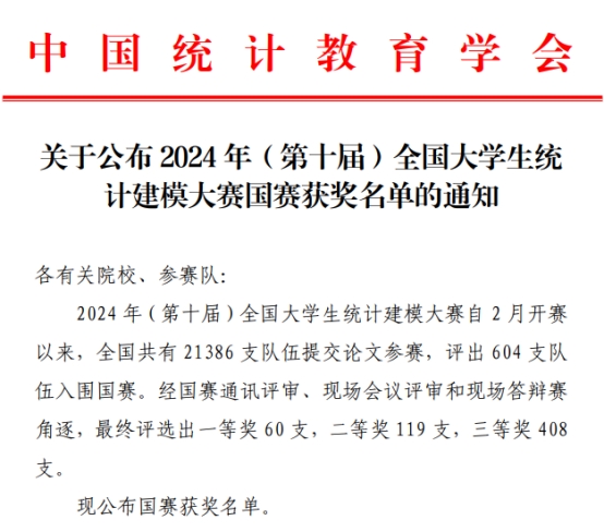 据悉,全国大学生统计建模大赛成功入选中国高等教育学会《全国普通高校大学生竞赛分析报告》竞赛目录,大赛自2009年开办以来,历经15年蓬勃发展,已成为我国统计学科领域最具影响力和含金量的赛事之一。