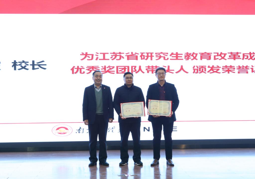院长朱红根上台领取“江苏省研究生教育改革成果优秀奖”奖状
