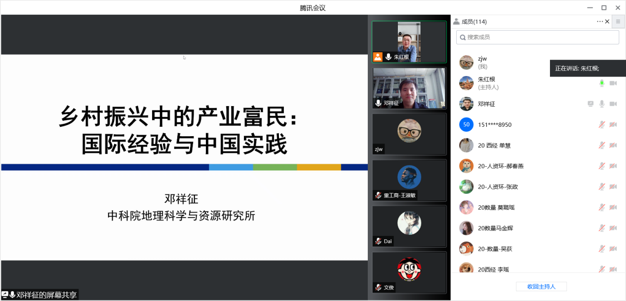 师生作题为《乡村振兴中的产业富民:国际经验与中国实践》的线上学术报告,报告由院长朱红根教授主持,来自成人漫画