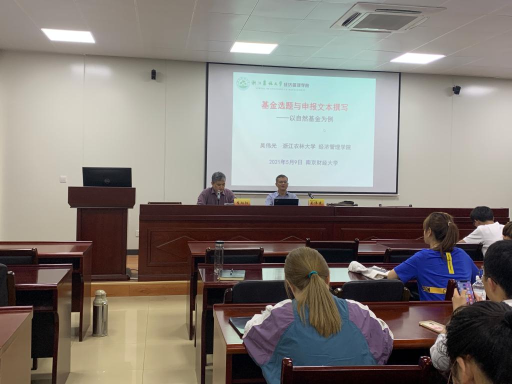 吴伟光院长主要讲述了基金选题与申报文本撰写(以自然经济为例)和经济学论文选题与主要问题两方面的内容。首先,在基金选题与申报文本撰写部分,吴院长把国家自科基金项目划档标准作为话题切入,详细地介绍了一篇优秀的基金项目的选题应当如何从科学问题或学科发展前沿出发;在文本撰写方面,吴教授更为细致地在研究背景与意义、文献综述、研究目标与内容、拟解决的关键问题等多个部分纠正了错误的问题示范并提供了合理的写法,对字数、语言技巧甚至是参考文献数量都提出了专业的建议。随后,在更贴合研究生写作日常需求的经济学论文选题与主要问题模块,吴教授阐述了经济学论文的基本要求,并对论文选题如何形成“卖点”提供了多个角度的思路,在论文需要重点关注且容易出纰漏的引言、理论框架、研究方法等多个部分中,吴教授提供了基本的写作模式,并提醒研究生同学注意避免错误写法。最后,吴教授预设了投稿时研究生同学们会遇到的问题并亲切地建议大家多练、多看,培养抗打击能力。