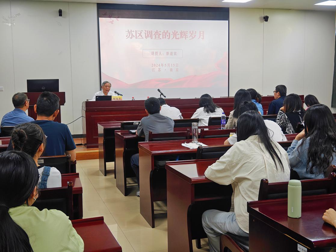 仙林校区德经楼307会议室座无虚席,著名统计学家、经济学家彭道宾教授在此发表了题为“苏区调查的伟大实践与理论探索”的演讲。彭教授不仅是江西师范大学苏区研究院的首席研究员,也是江西省统计局的巡视员和新闻发言人,他的研究成果在国内外享有盛誉。