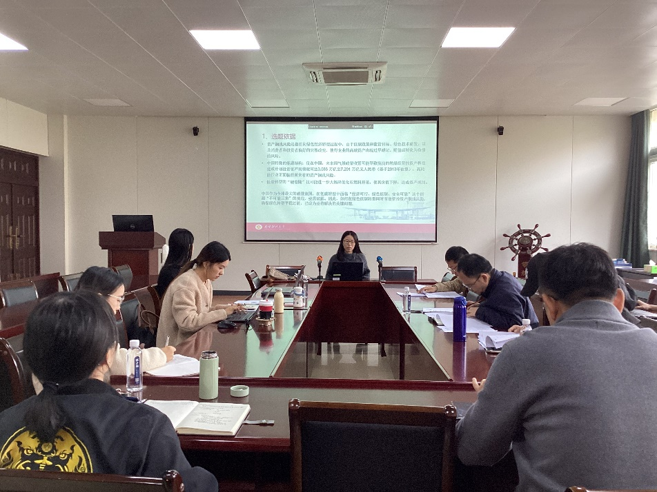 随后,陈老师介绍高碳资产搁浅风险研究,课题聚焦气候转型下高碳企业资产减值问题,提出“风险识别-耦合-传导-治理”思路。师老师强调,需先清晰界定“资产搁浅风险”,补充其导致的产能不足、资源浪费等后果,可引入欧洲绿色转型能源短缺案例增强说服力。刘院长建议优化框架逻辑,打破“测算-机制-政策”常规套路,深化跨学科理论应用;杨老师则建议通过图表强化研究内容逻辑性,提升可读性。